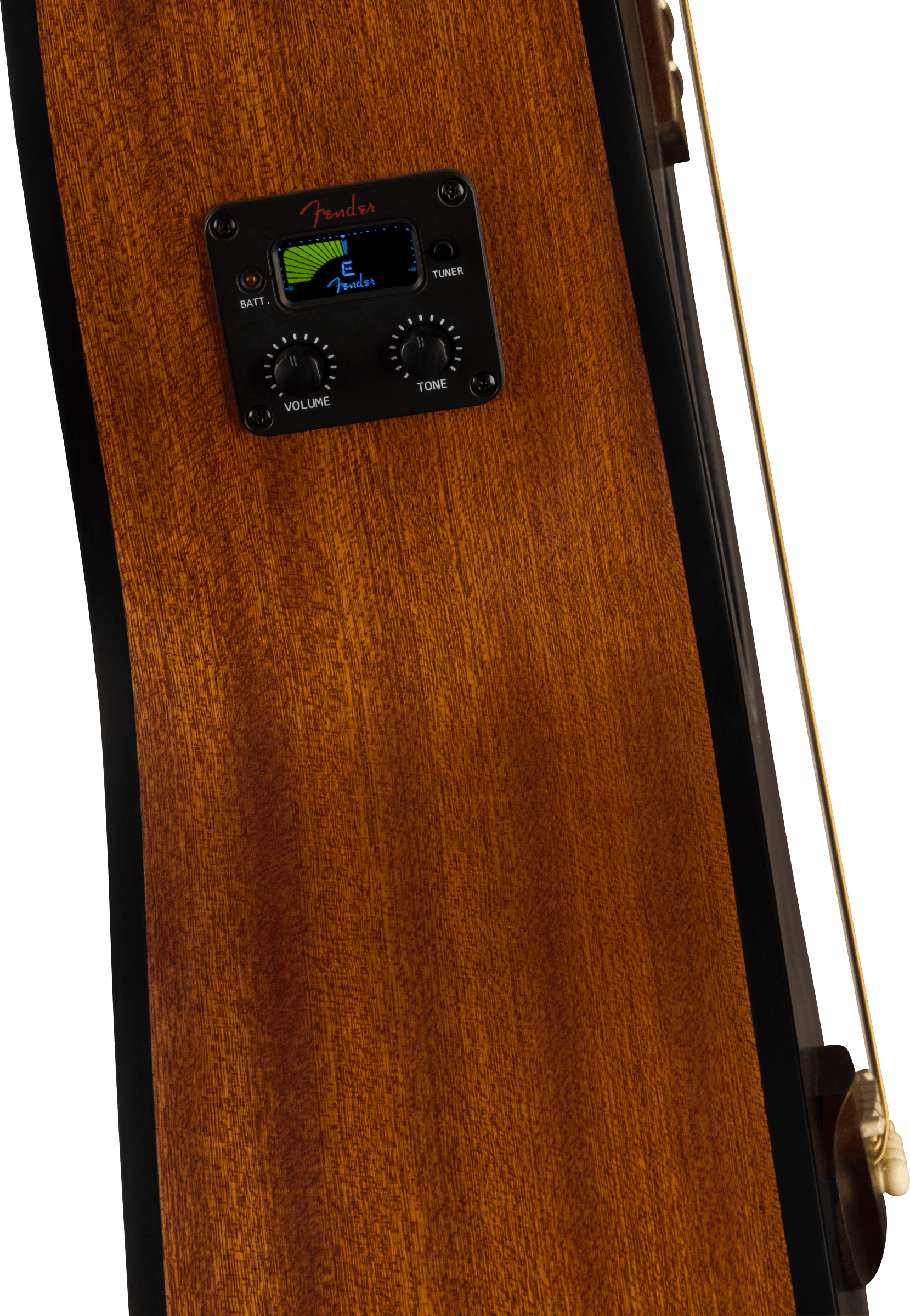 Completando la lista de características está el sistema de preamplificación Fender® que permite una reproducción fiel del sonido natural de la guitarra cuando se conecta a un amplificador o dispositivo de grabación, e incluye un afinador integrado para ajustes rápidos y convenientes.
