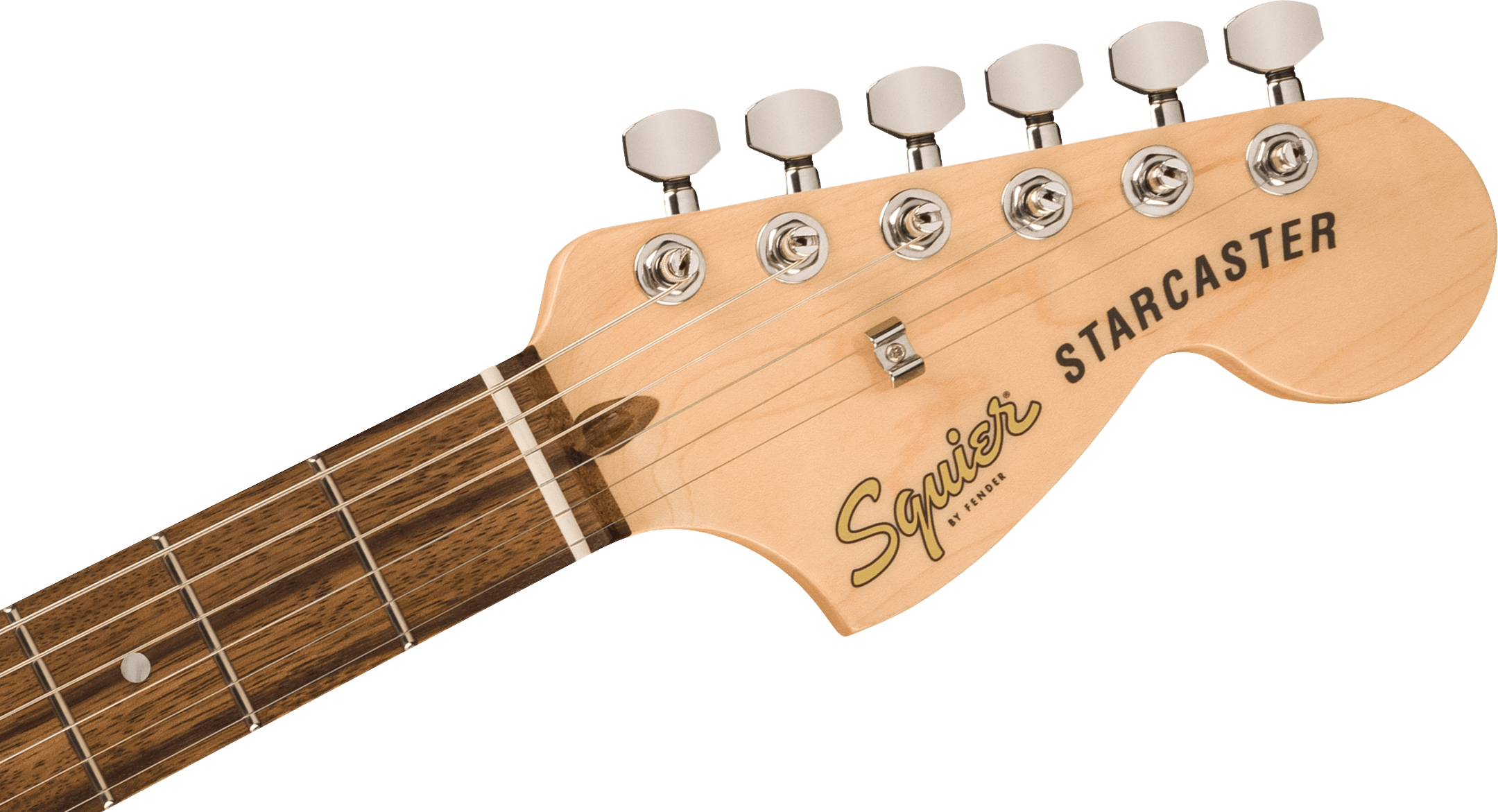 La Affinity Series™ Starcaster Deluxe incluye varias características pensadas para el ejecutante, como un cuerpo semi-hueco ligero, un mástil cómodo y delgado en forma de 'C' con el clásico clavijero tipo Stratocaster®, un puente ajustable con cordal tipo stopbar para una afinación estable, y clavijas selladas con ejes divididos para una afinación precisa y fácil cambio de cuerdas.